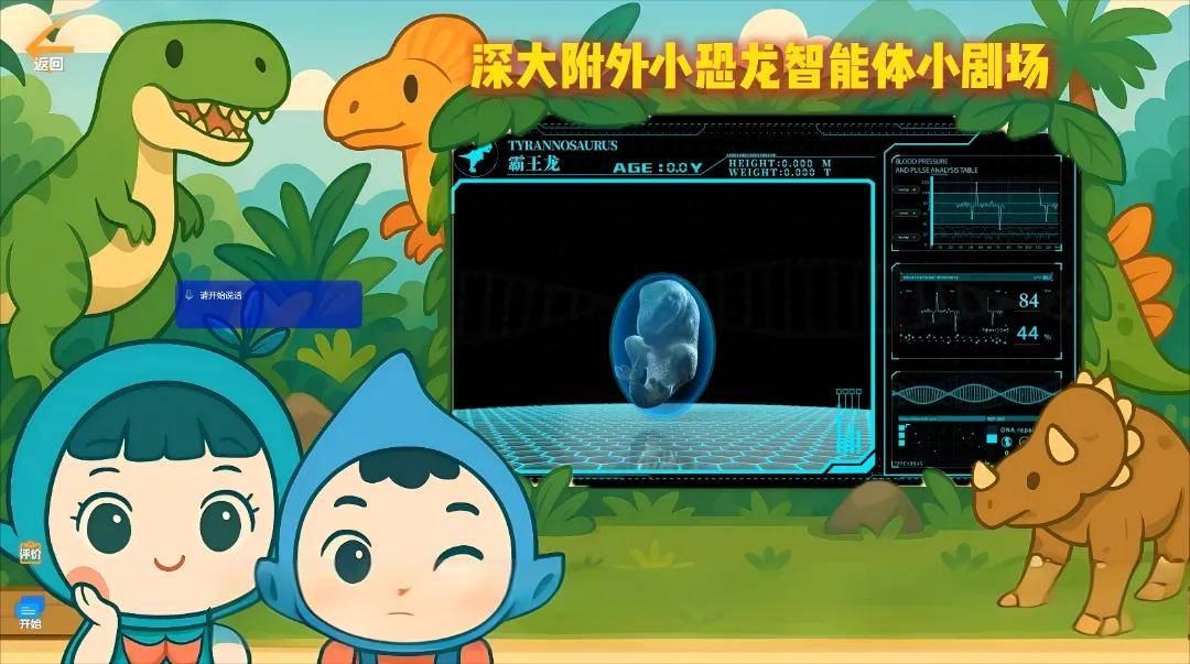 如今,答案不再只停留在书本里。在学校的“恐龙智能体小剧场”里,孩子们可以亲眼看到一只“活生生”的恐龙向他们介绍自己,还能与它进行互动问答。这一场景,不仅点燃了孩子们的想象力,也让老师们深刻体会到——校园文化正在进入“智慧化”时代。